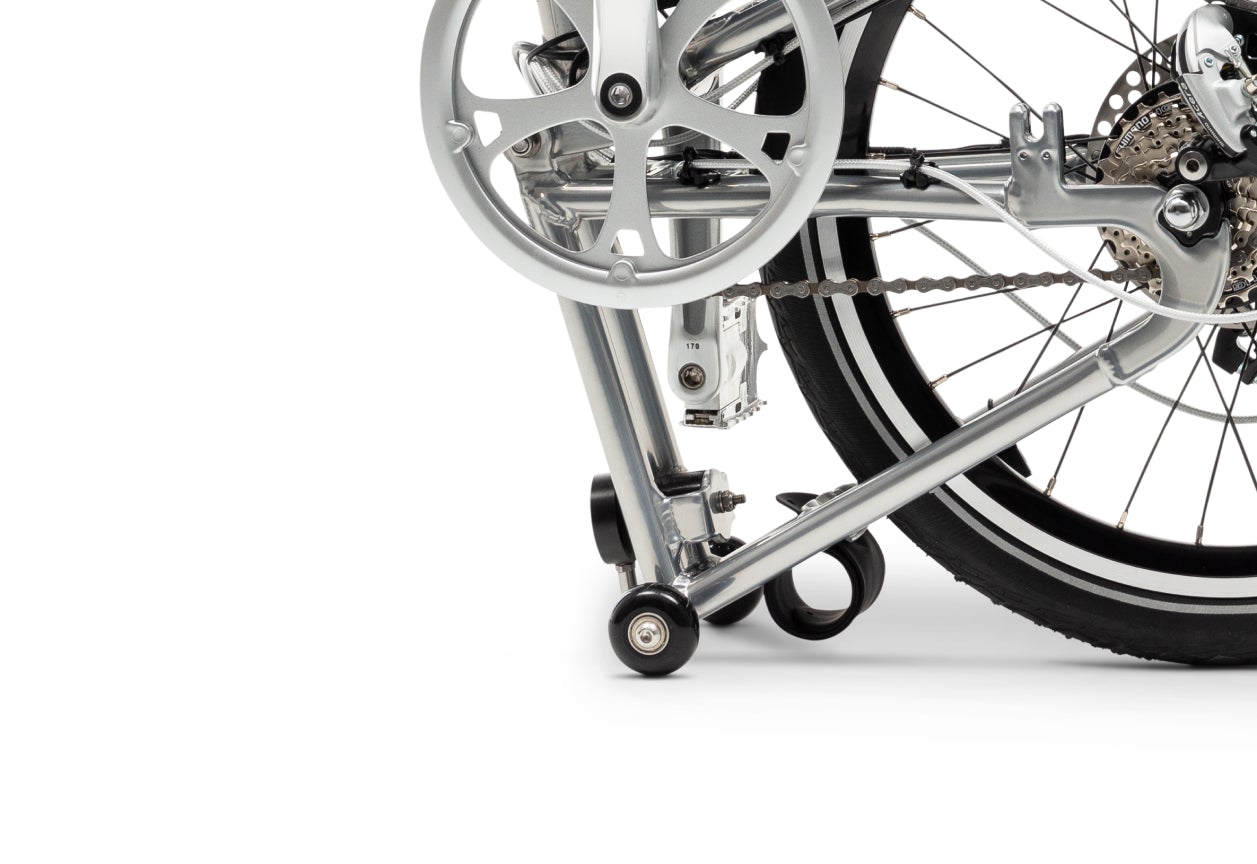 We like to move it! In 2 Sekunden ist das Fahrrad halb zusammengefaltet (und damit in der Position, die du in 95 % der Zeit benötigst). In 10 Sekunden ist das Rad vollständig zusammengeklappt (L 85 x H 74 x B 30cm).